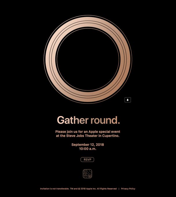 En fin, vemos que aparece un círculo dorado, como la figura del Apple Park. Bajo ella dice ``Gather round´´, que traducido quiere decir como ``Reunirse´´.